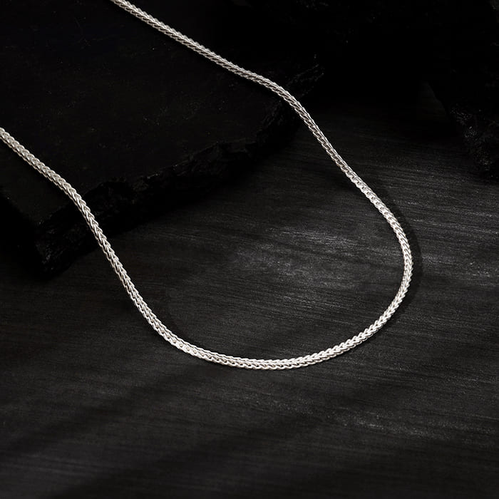 The Silver Spiga Wheat Chain is inspired by the assuring aura of positivity and wholesomeness. Perfect for your everyday style.